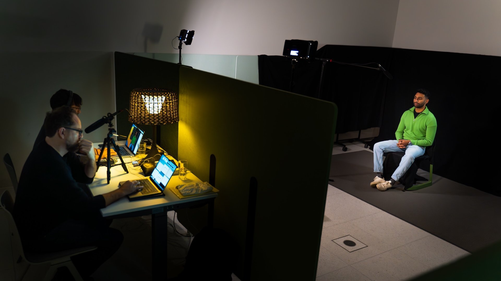 Diese Fragen und die Antworten werden auf fünf Monitoren im SQUARE präsentiert, wobei immer die Gesichter derselben Teilnehmer von 2022 und 2023 gleichzeitig zu sehen sind, jeweils ab dem Moment, als sie die Frage hören bis zum Moment, als sie ihre Antwort gefunden haben und diese aussprechen.